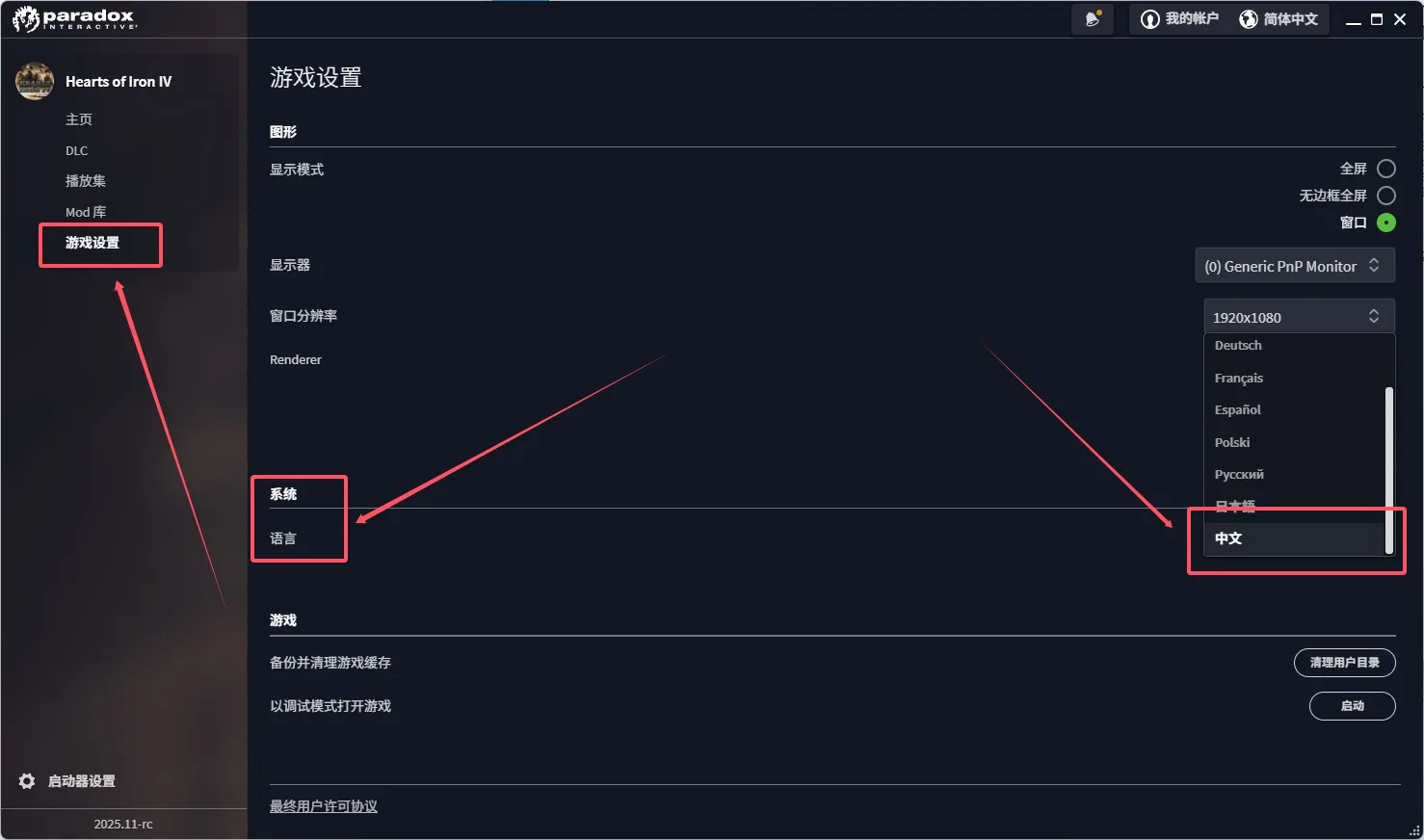 钢铁雄心4启动器如何设置中文