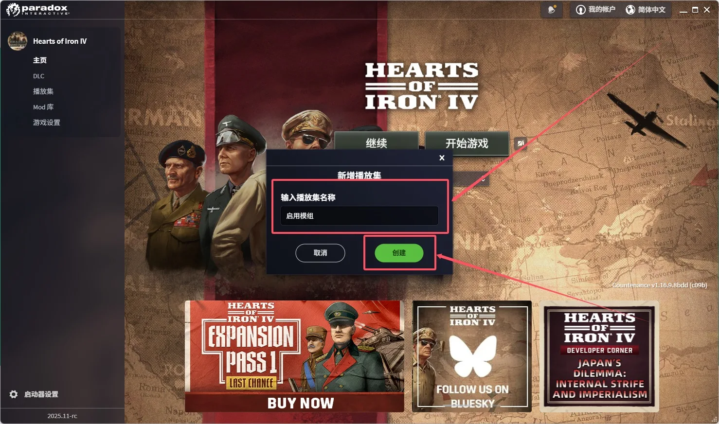 钢铁雄心4启动器怎么启用模组